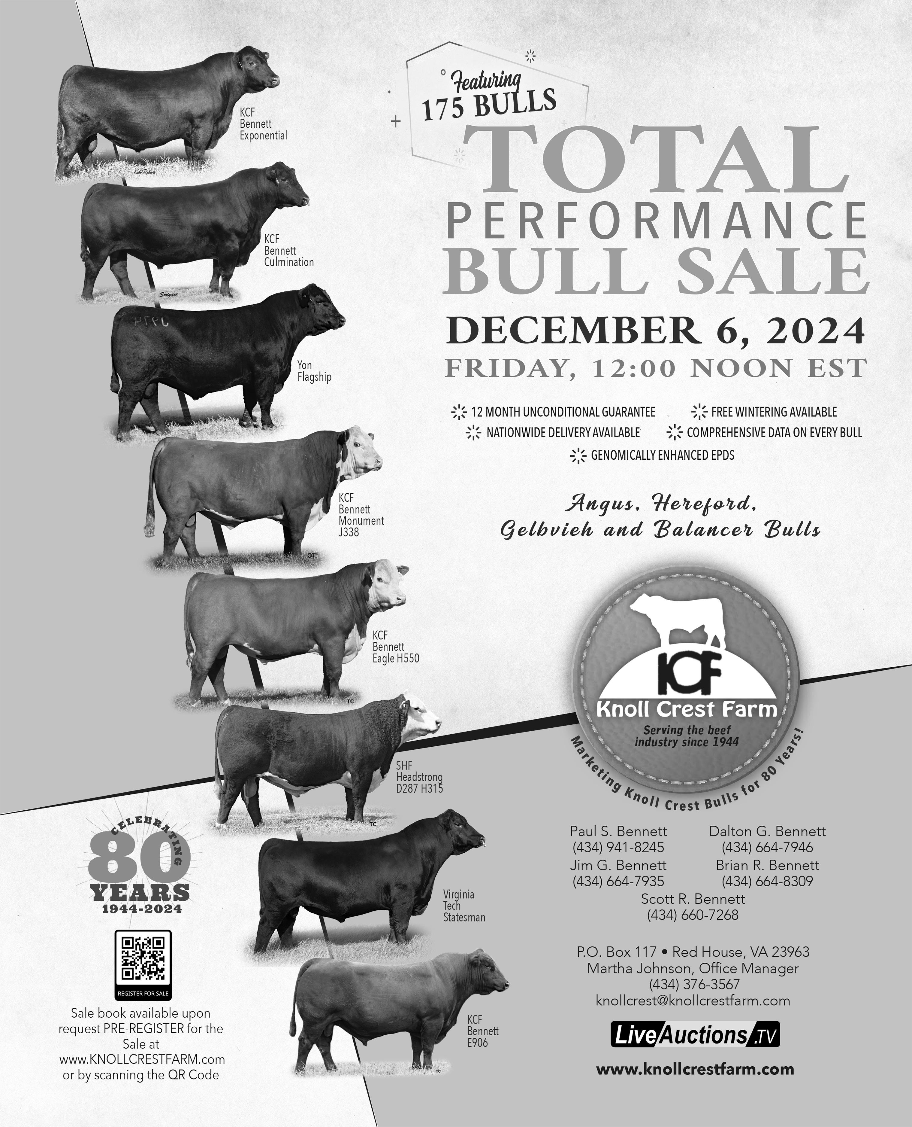 Dec. 6 — Knoll Crest Farm Total Performance Bull Sale, Red House, Va.
