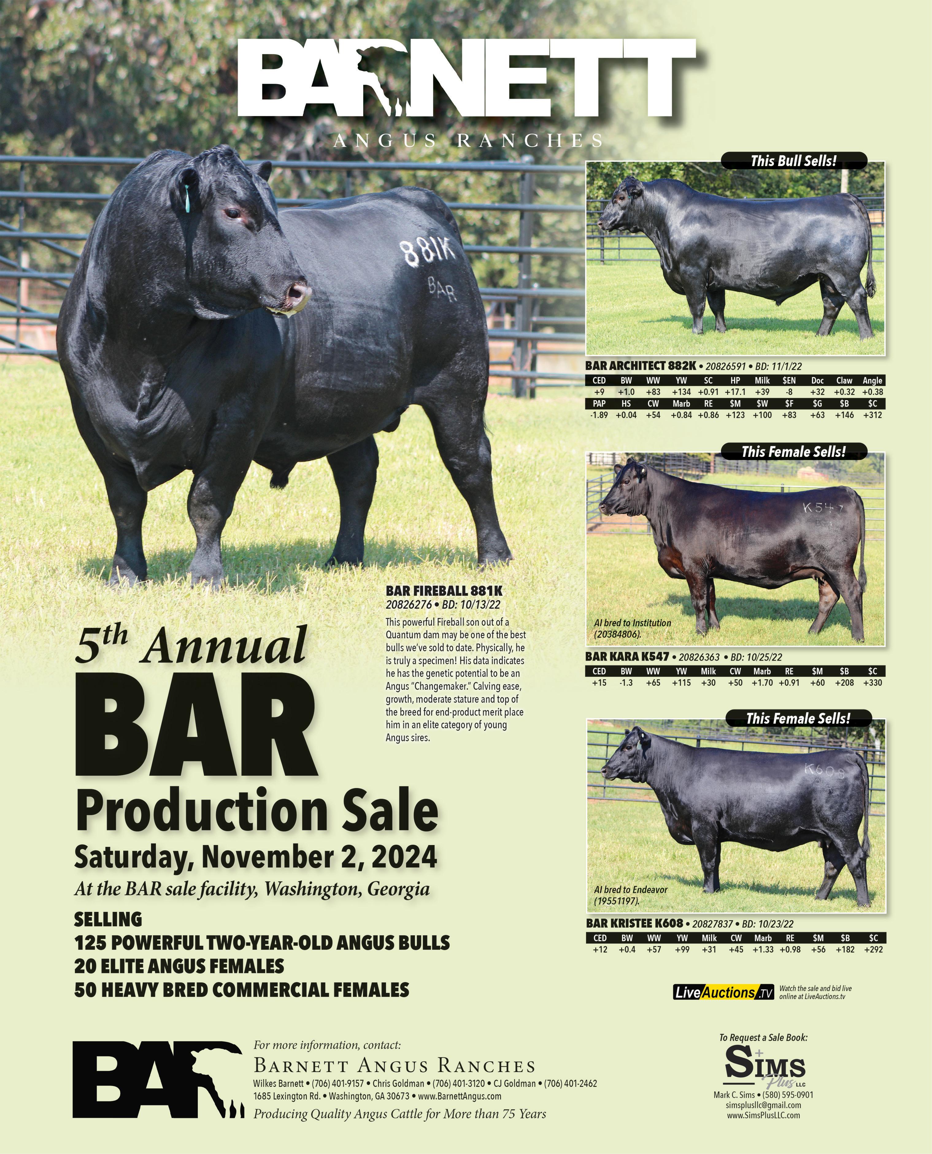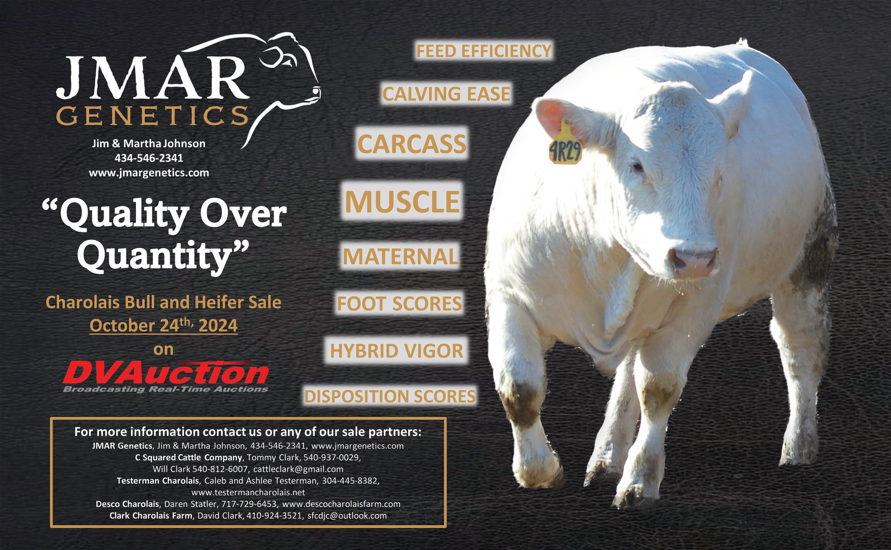 Oct. 24 — JMAR Genetics “Quality Over Quantity” Charolais Bull & Female Sale, via DVAuction.com