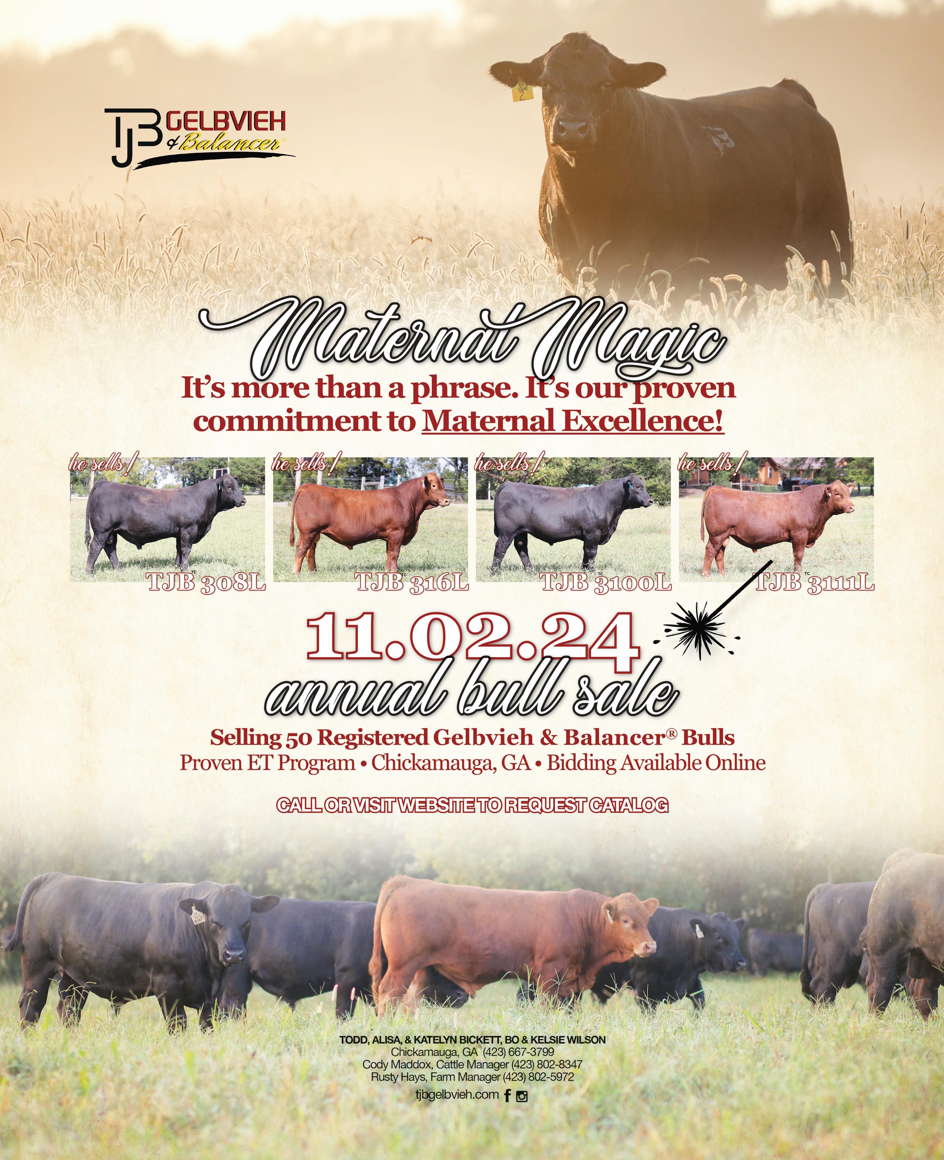 Nov. 2 — TJB Gelbvieh & Balancer Maternal Magic XIII Annual Bull Sale, Chickamauga, Ga.