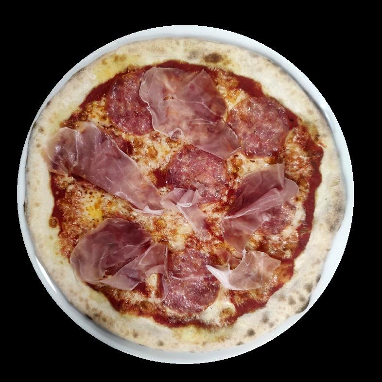 salami milano, ilmakuivattu kinkku, tomaattikastike, mozzarellajuusto