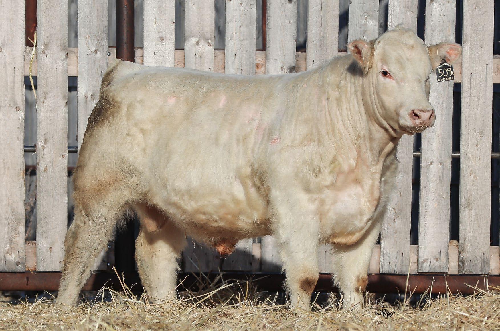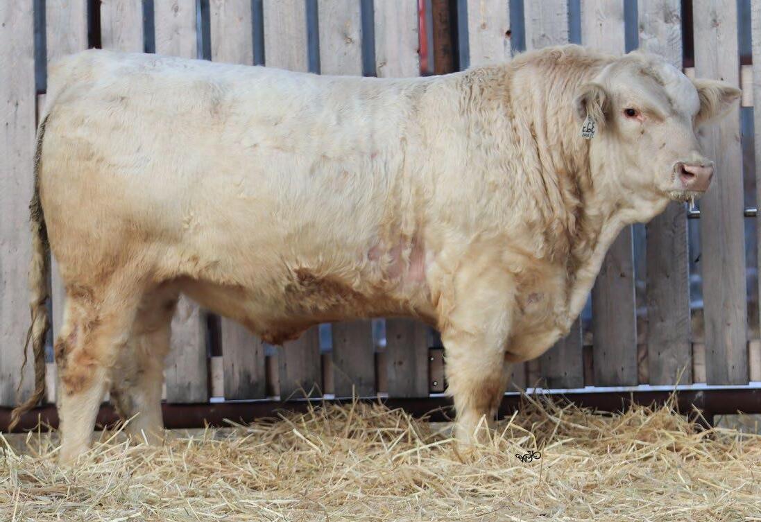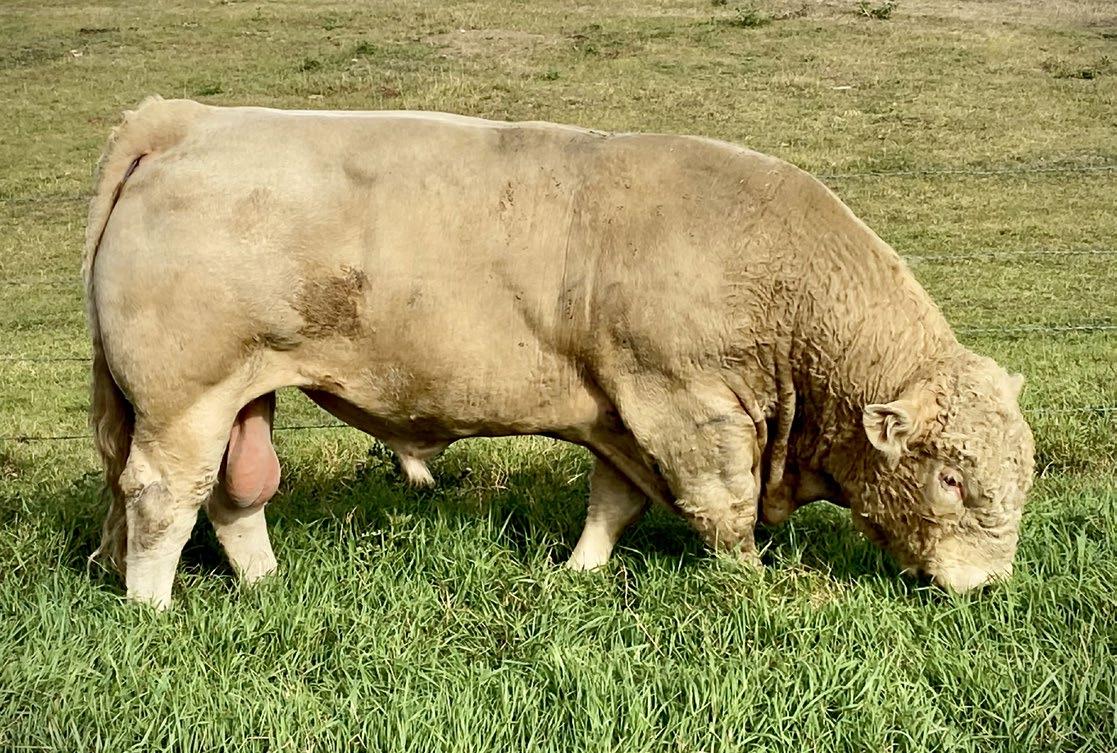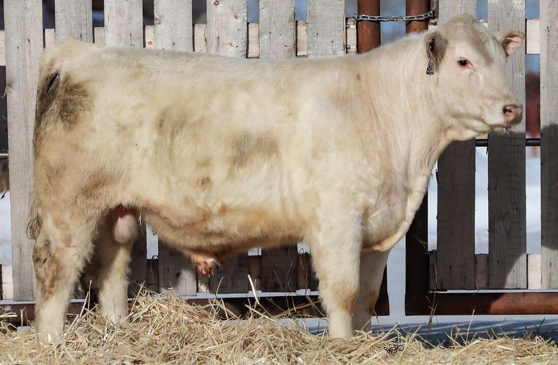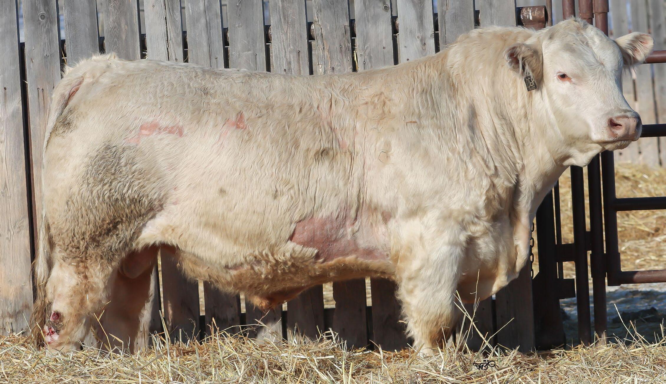 Sharp and clean fronted with an excellent skull structure. Big hipped with lots of middle, excellent weaning weight of 715lbs.