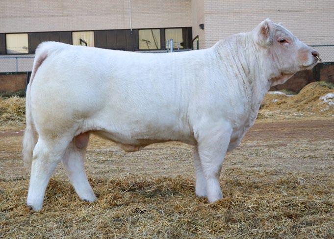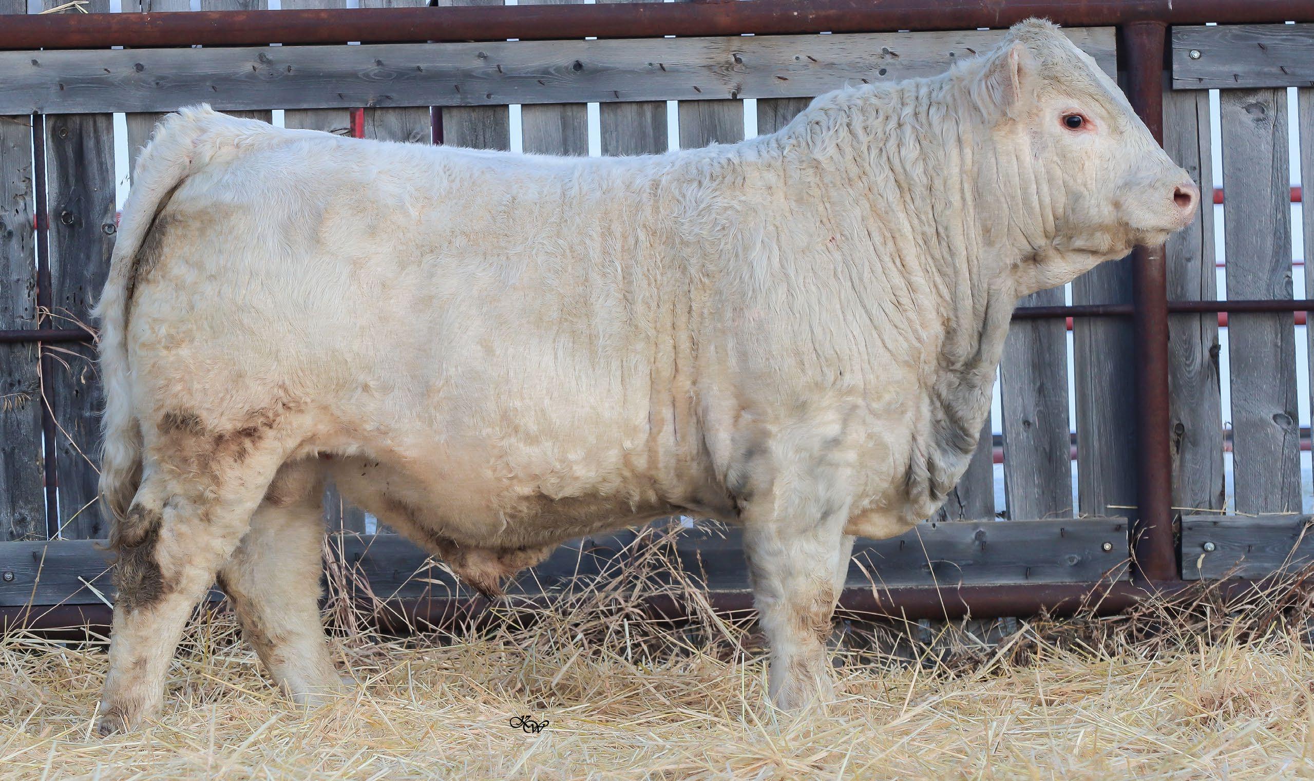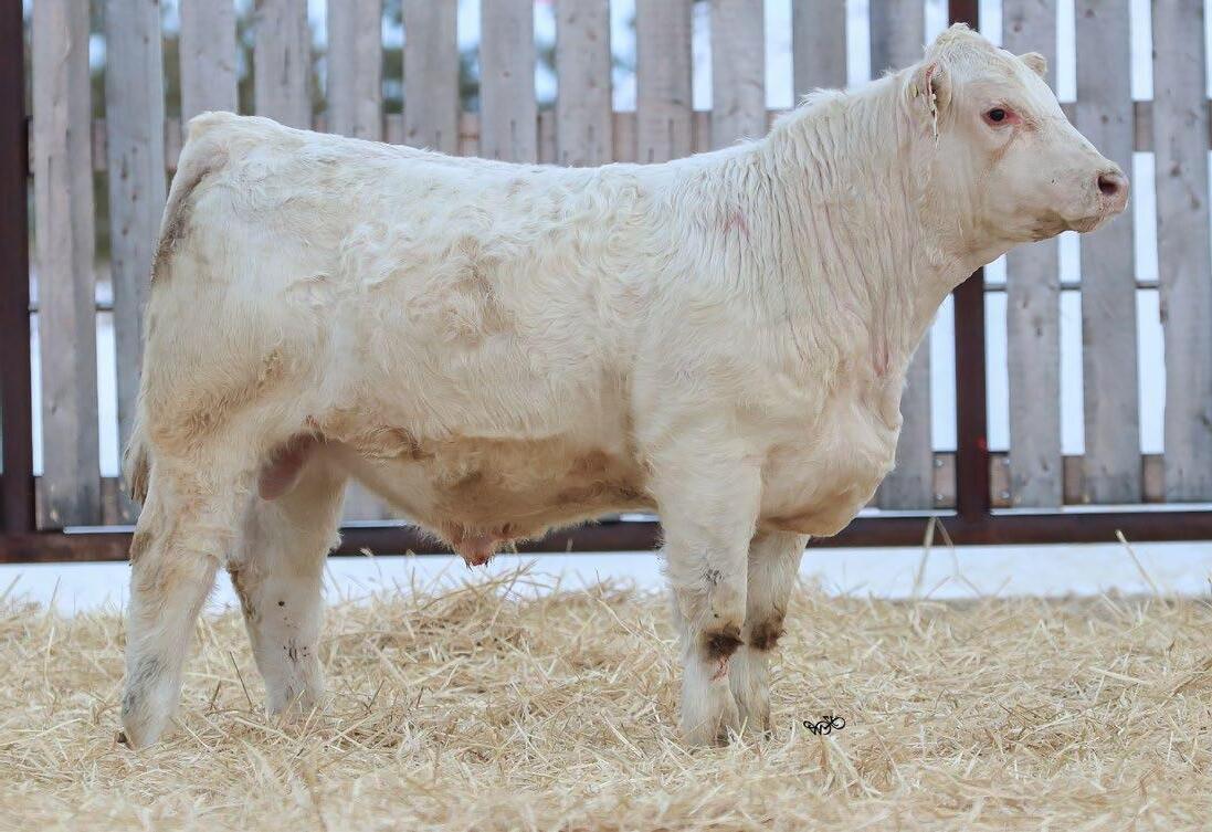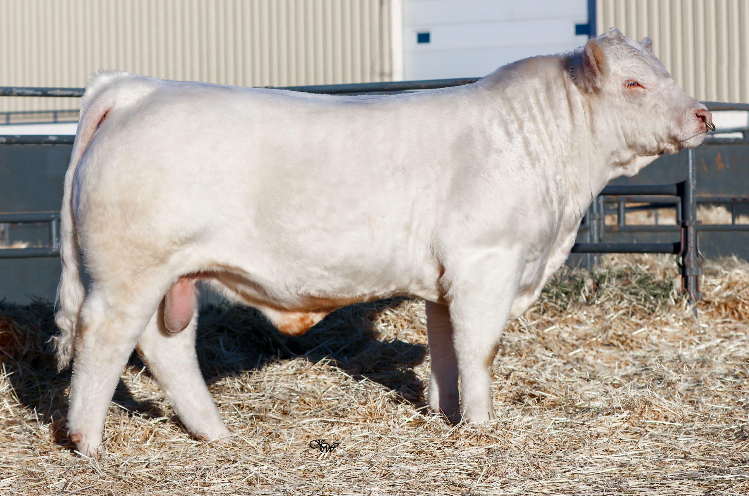 A very smooth made, balanced bull who isn’t extreme in any way, but is just a GOOD bull overall. He is very square out of his tail head and stands on an exeptional set up feet and legs.