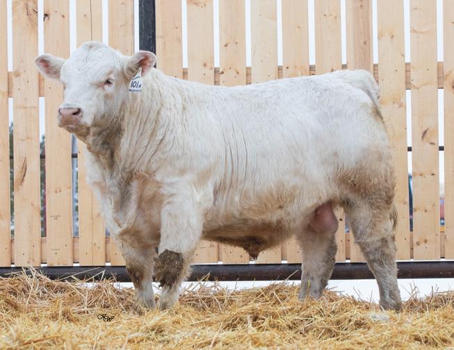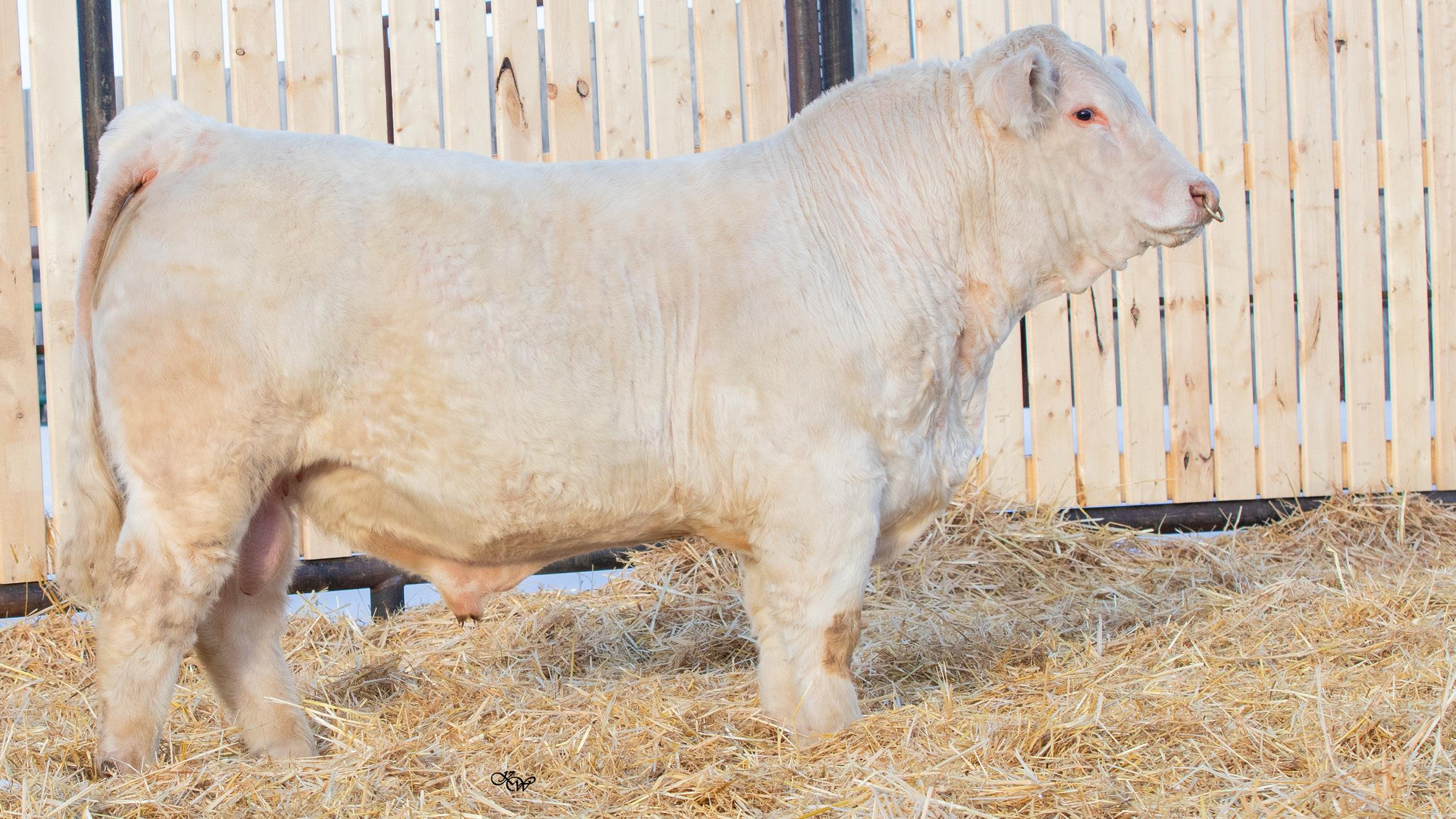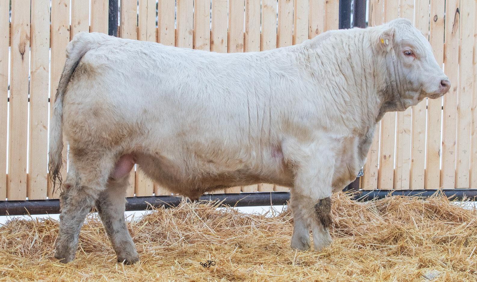 This bull’s proven performance and explosive growth are undeniable. He exemplifies the direction we are striving for in the Charolais breed, combining power, performance, added hair, and a calm, dependable disposition.
