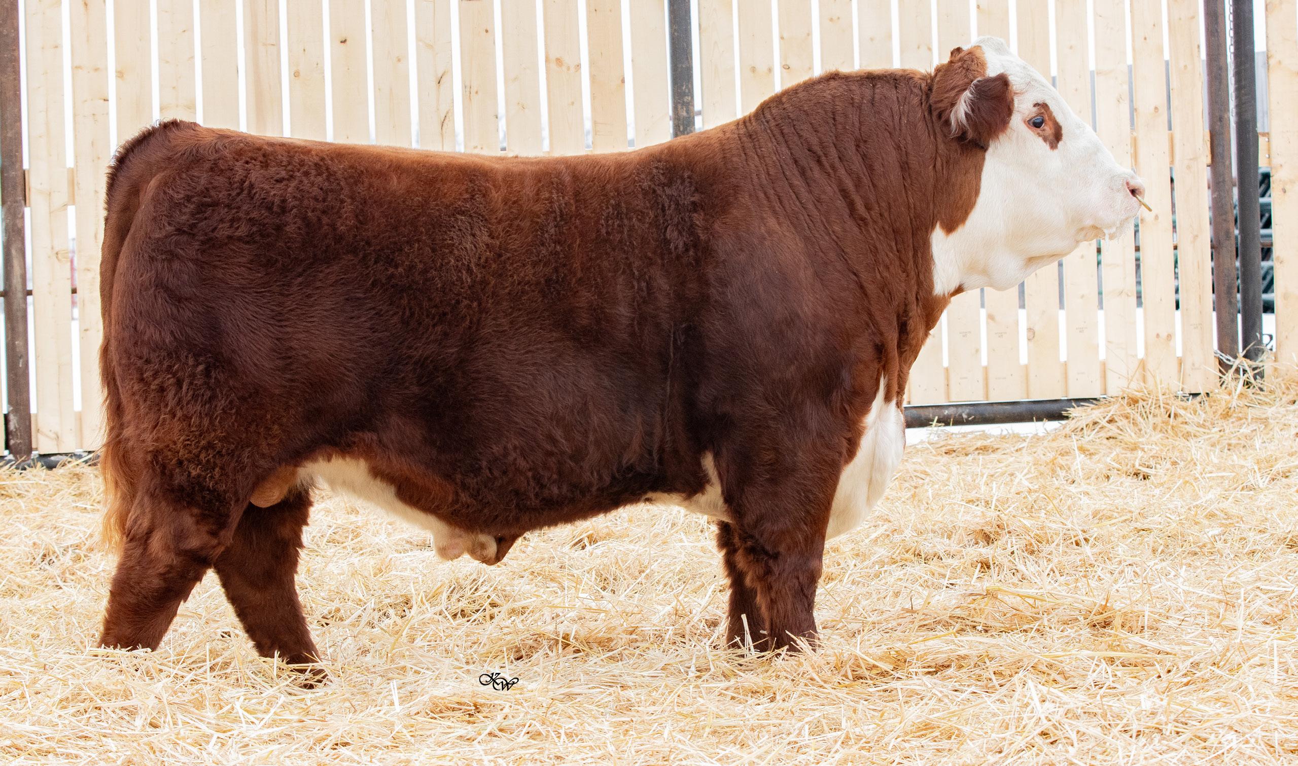 Nashville is a true feature bull and unquestionably stands at the top of the pen. Smooth made, powerful, and packed with performance, he combines structural correctness, eye appeal, and a calm, easy-going disposition. Out of a dam purchased a few years ago who is quickly becoming one of the top producers in the herd, with an extremely good udder and a feminine, attractive look. Nashville is a complete herd sire prospect built to add pounds, presence, and consistency to any program.