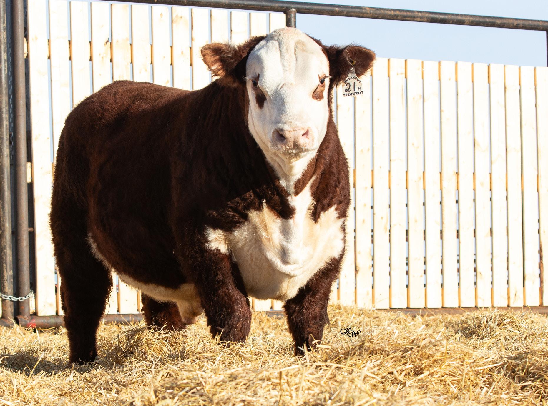 63N is a true performance bull, posting an 845 lb actual weaning weight and tipping the scales at 1,210 lbs on February 1. His exceptional growth and pounds gained make him a powerful option for adding performance to any calf crop.