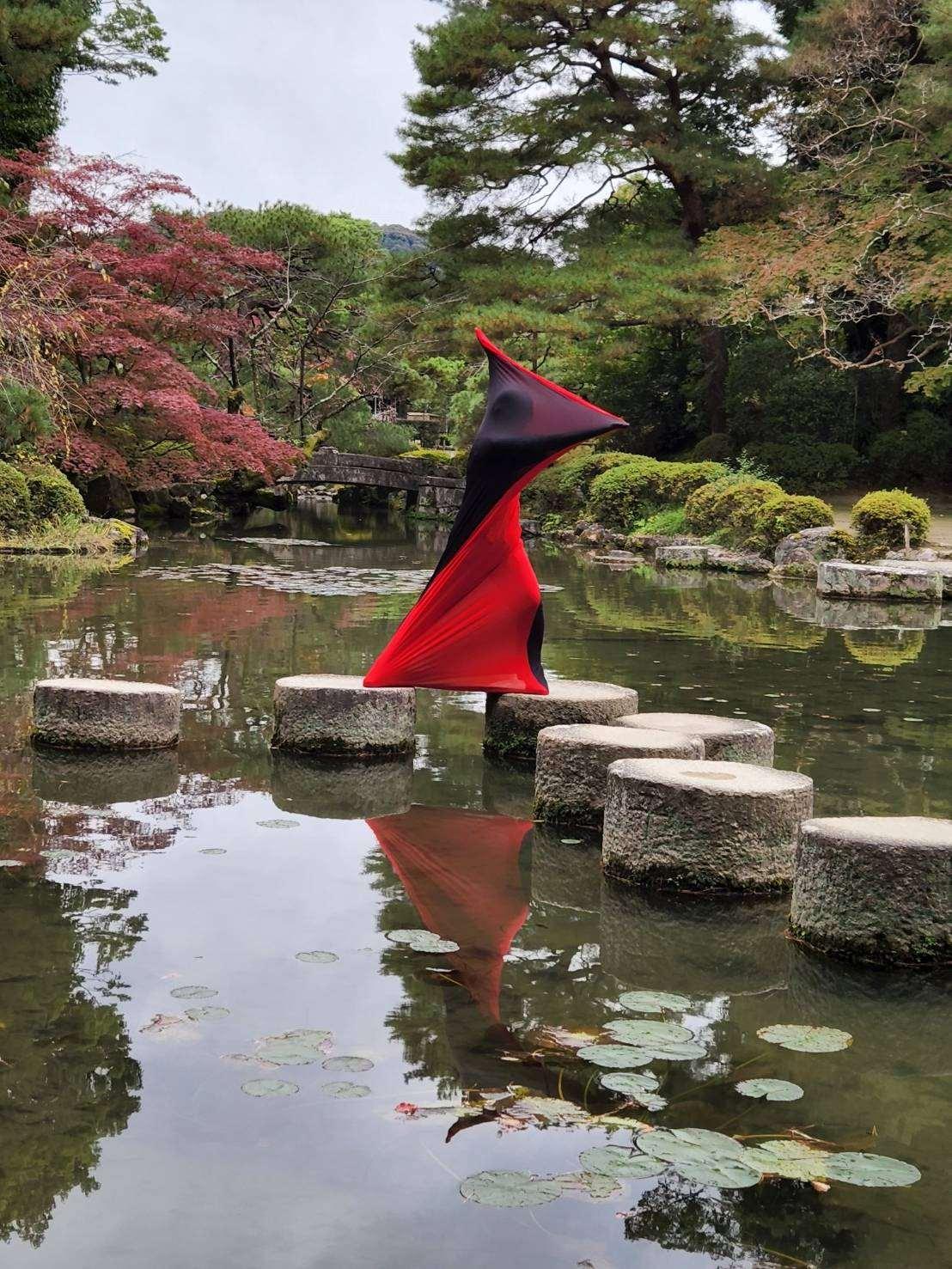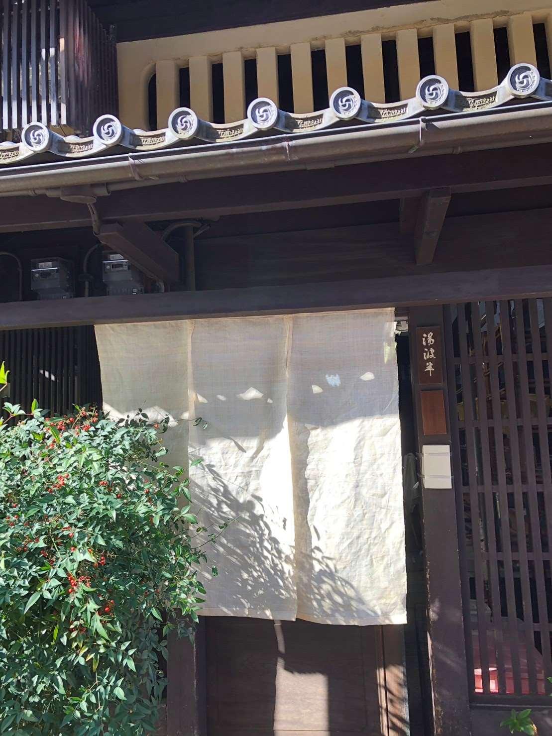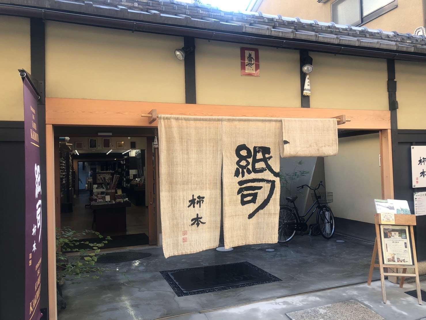 在錦市場迷了路,忽然二個巨大中文 躍了出來,「紙司」在麻布色軟簾上 抓住旅人說著暗語,這簾懸於古老京 町屋簷下,正悠閒地晃動軀體,就像 一個穿著唐代古朝服的官員,搖頭擺 腦在現代時尚建築中,突兀的遊走。