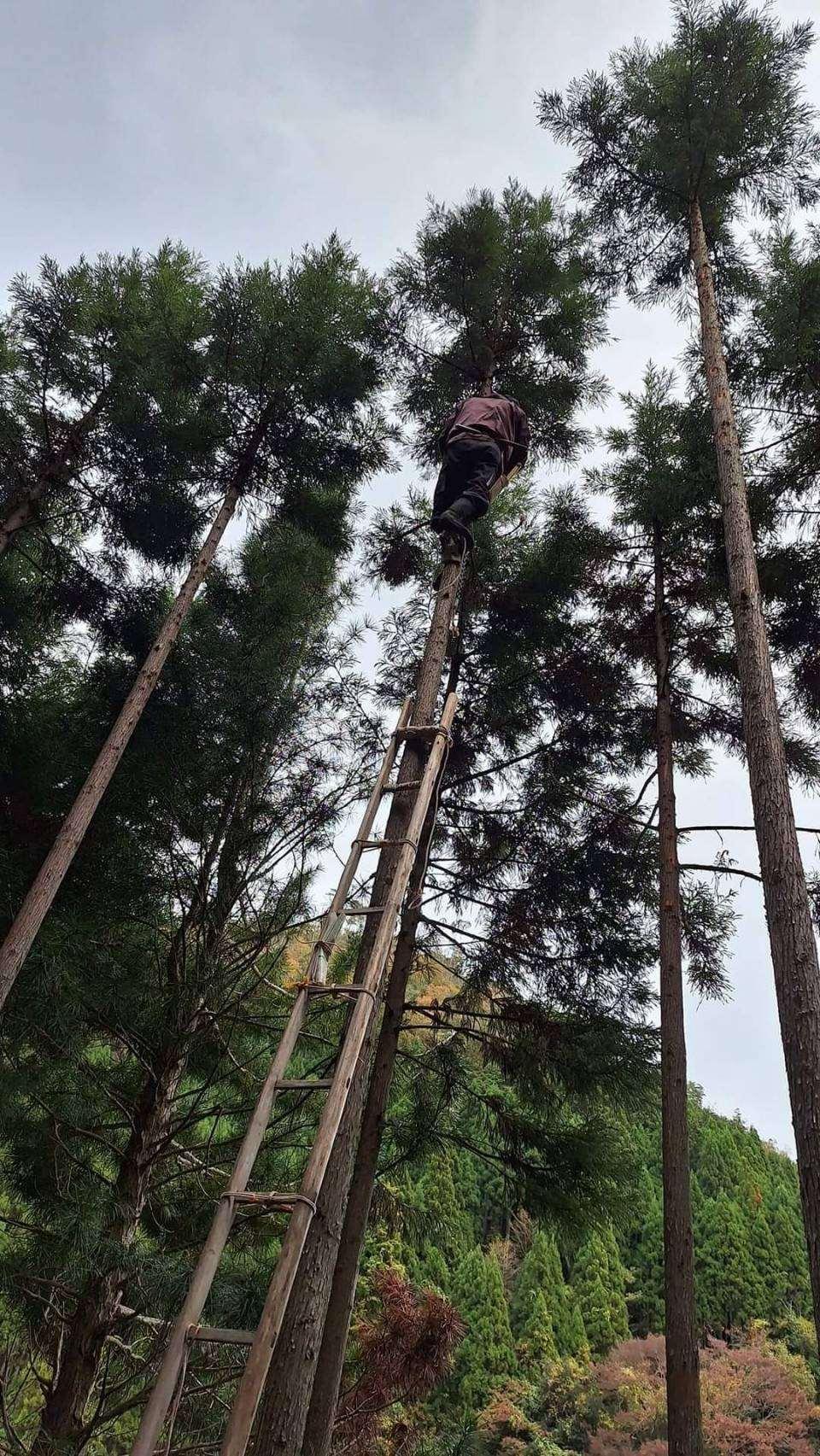 好不容易老公公安全降落,四週響起掌 聲,不知是給我?還是給他? 他一邊幫粉絲簽名,一邊說著:北山杉就 是要瘦身,才能挺立,精壯!