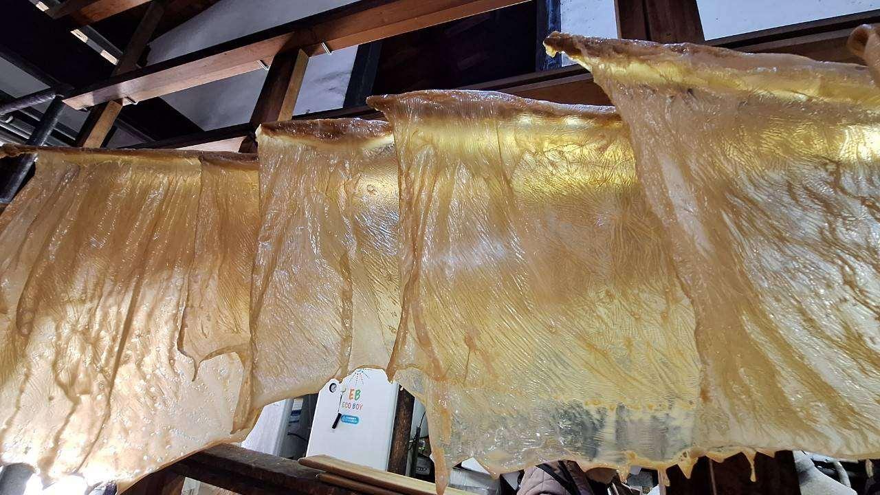 正午,秋陽負著百年傳承的使命來到 紙司,陽光炫成一顆鑽石,站在栗紅 格子窗前,那株古樹的老葉上張望。