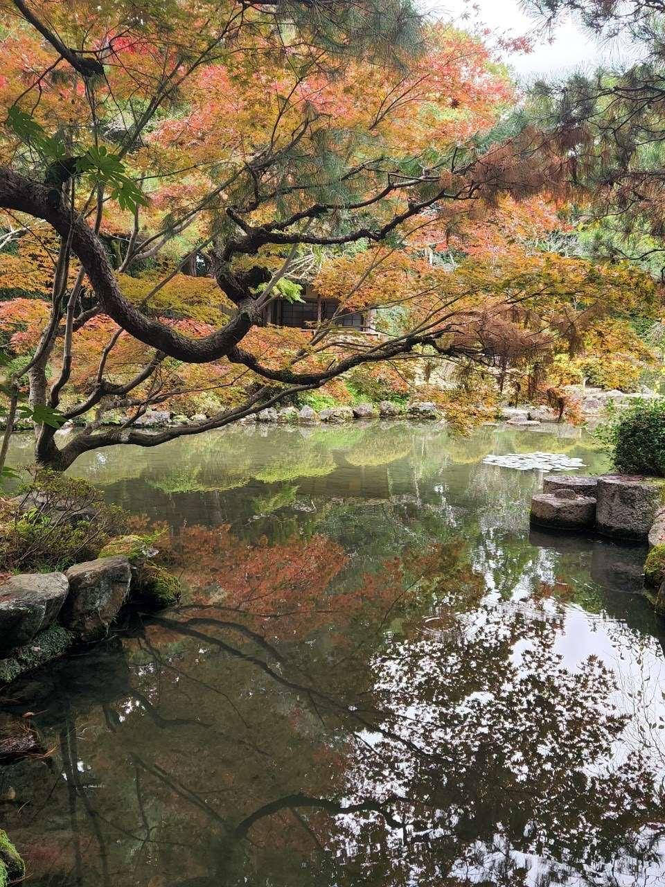 比起清水寺擁擠的懸崖,牠說這裡諸 神靜默人心曠野,世俗紛飛如堂前銀 杏落黃……