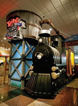 DDEDUCE CLUES at the ultimate family-friendly escape room at Tick Tock Escapes (TickTockEscapeRoom. com). Their Pyramid Paradox room is a favorite with incredible special effects reminiscent of an Indiana Jones film. Teams of six to 10 people are “locked” in a room for an hour, and they solve puzzles trying to figure out how to escape. Each room features a different theme and a different set of puzzles. E EAT OUT KC boasts several super fun restaurants for families, but the ultimate top pick for KC kids is consistently Fritz’s Railroad Restaurant (FritzsKC.com). Model trains deliver burgers and shakes to your table.