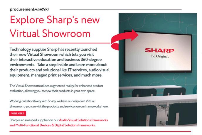 Technology supplier Sharp launched their Virtual Showroom which lets you visit their interactive education and business 360-degree environments Take a step inside and learn more about their products and solutions like IT services, audio visual equipment, managed print services, and much more