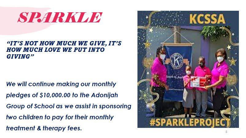 OUR SPARKLE PROJECT IS A MONTHLY AWARD OF $10,000 GIVEN TO ONE OR MORE STUDENTS OF THE ADONIJAH GROUP OF SCHOOLS TO ASSIST WITH THERAPY AND OTHER TREATMENT.