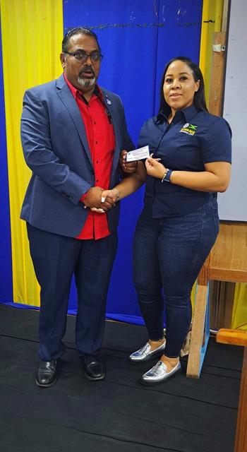 For our second quarter church service, we joined the service at Family, Word and Worship located on Belmont Road in Kingston, on Sunday March 24. We were truly blessed and encouraged by the message from host pastor Junior Tucker, pictured receiving a donation to the church from the club.