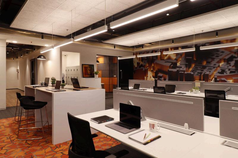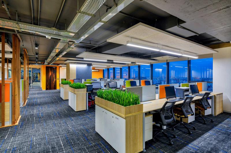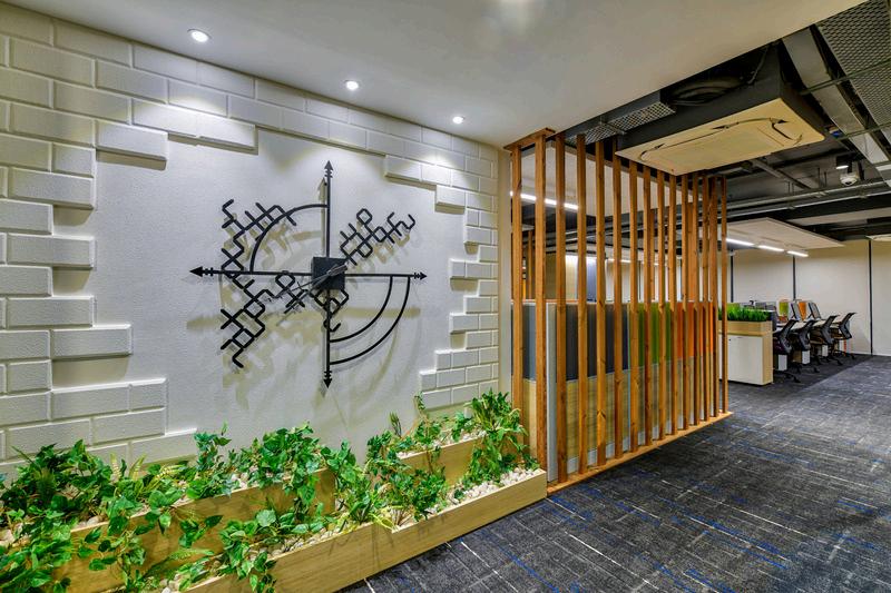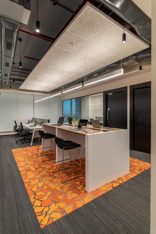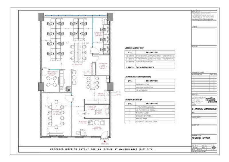 compact office space created for Standard Chartered Bank. This office is divided in to various zones as per requirement of client. The main challenge was to utilize raw materials and maintain an open layout while accommodating a staff capacity of 21. The result is a seamlessly designed workspace that combines functionality, aesthetics, and an environment conducive to productivity.