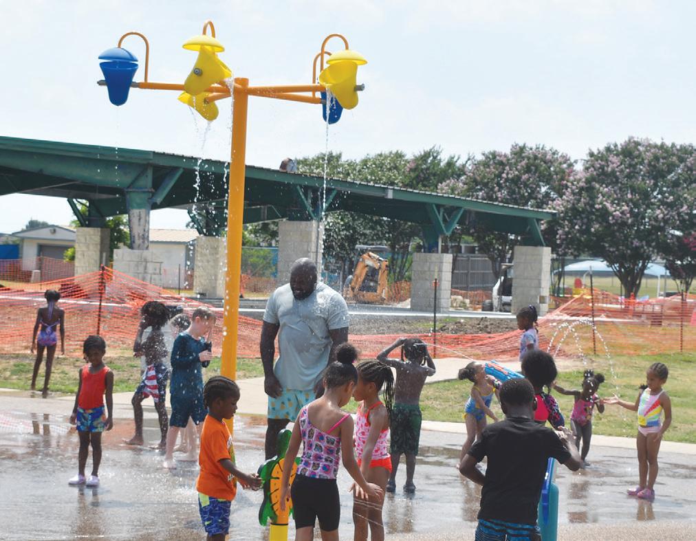 Families cool off at the Junior Service League spray pad in Long Branch Park in Killeen.