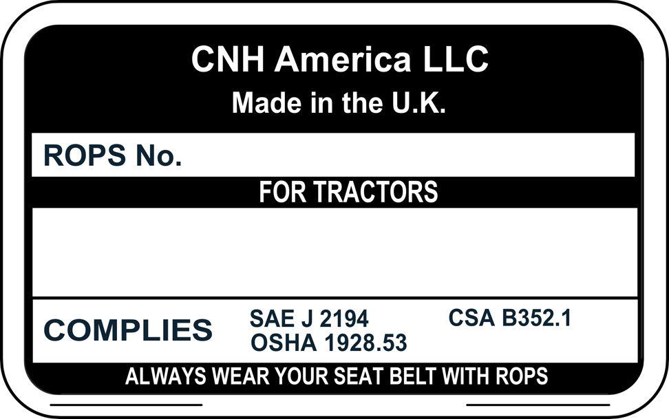 The ROPS identification plate can found the righthand side the cab trim below the rear window