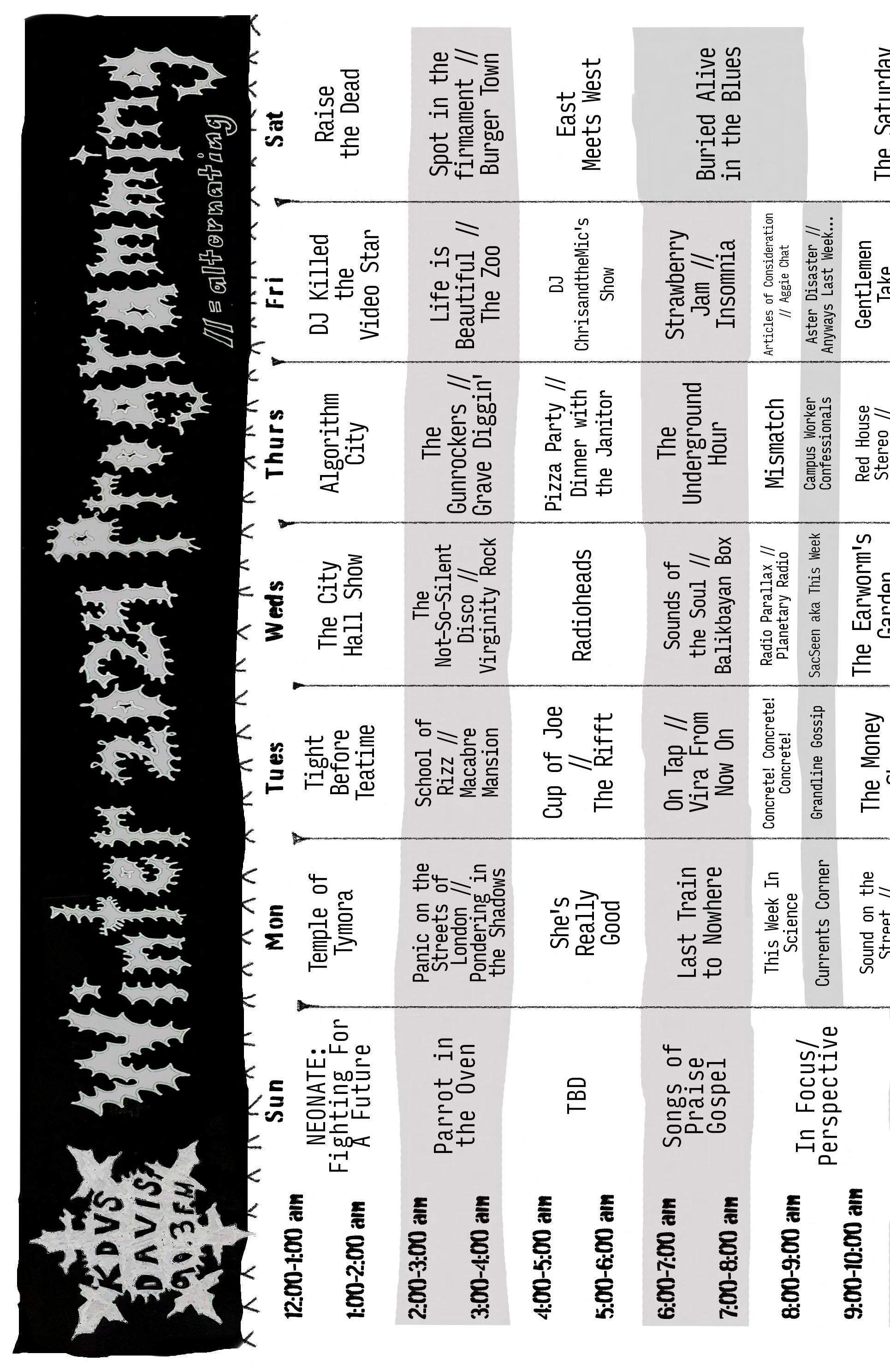 What even is Kdviations? Kdviations started as a quartlery programming guide, but has evolved into a collabortive collage of music reviews, interviews, art, poetry, games, and so much more. If you’re confused, you’re reading it right. We hope you love our zine as much as we love putting it together!