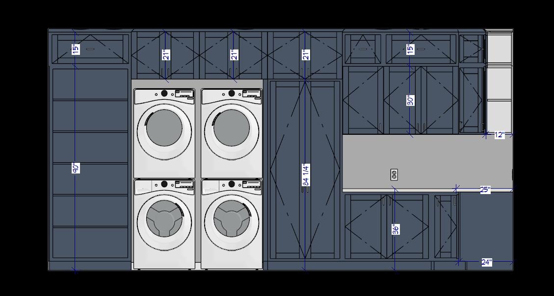 Client wants space to hold childrens items such as school bags shoes etc. 2 washers + 2 dryers is a must, possible wants island if there is space. Would like to see a dog wash area as well.