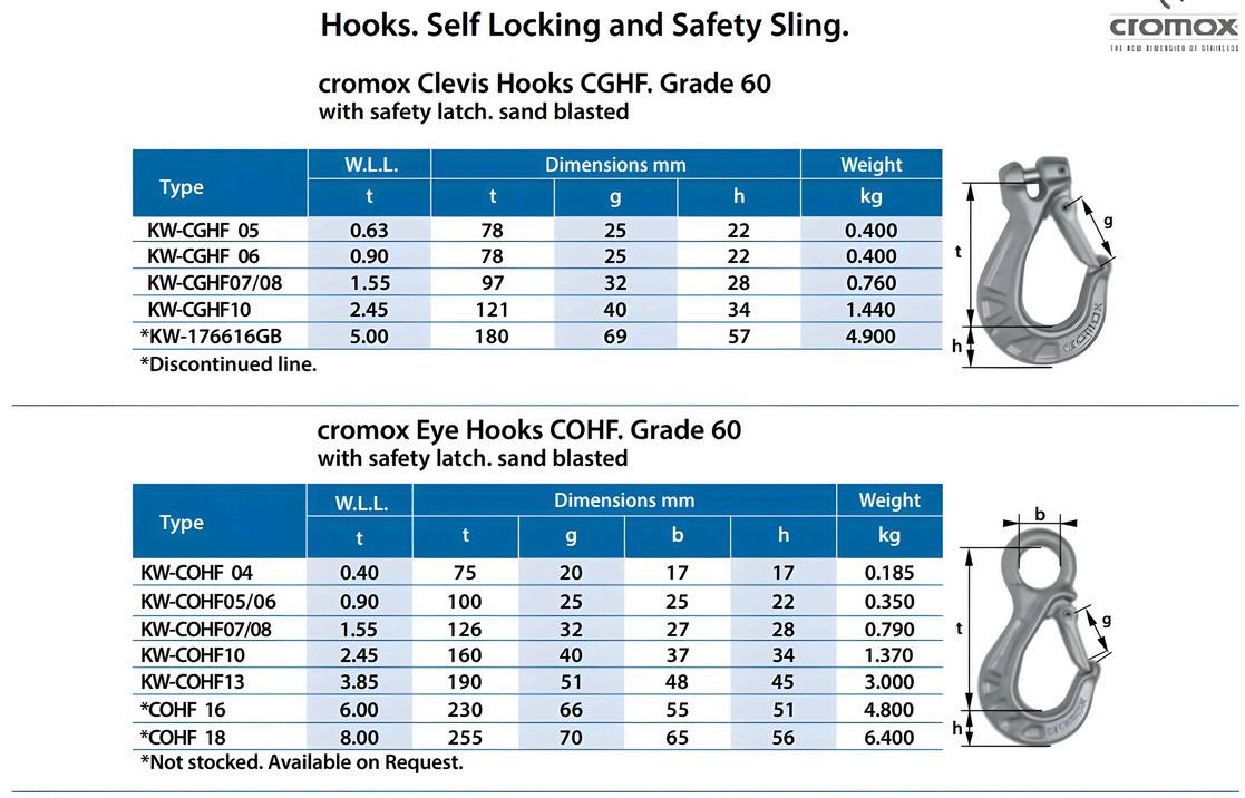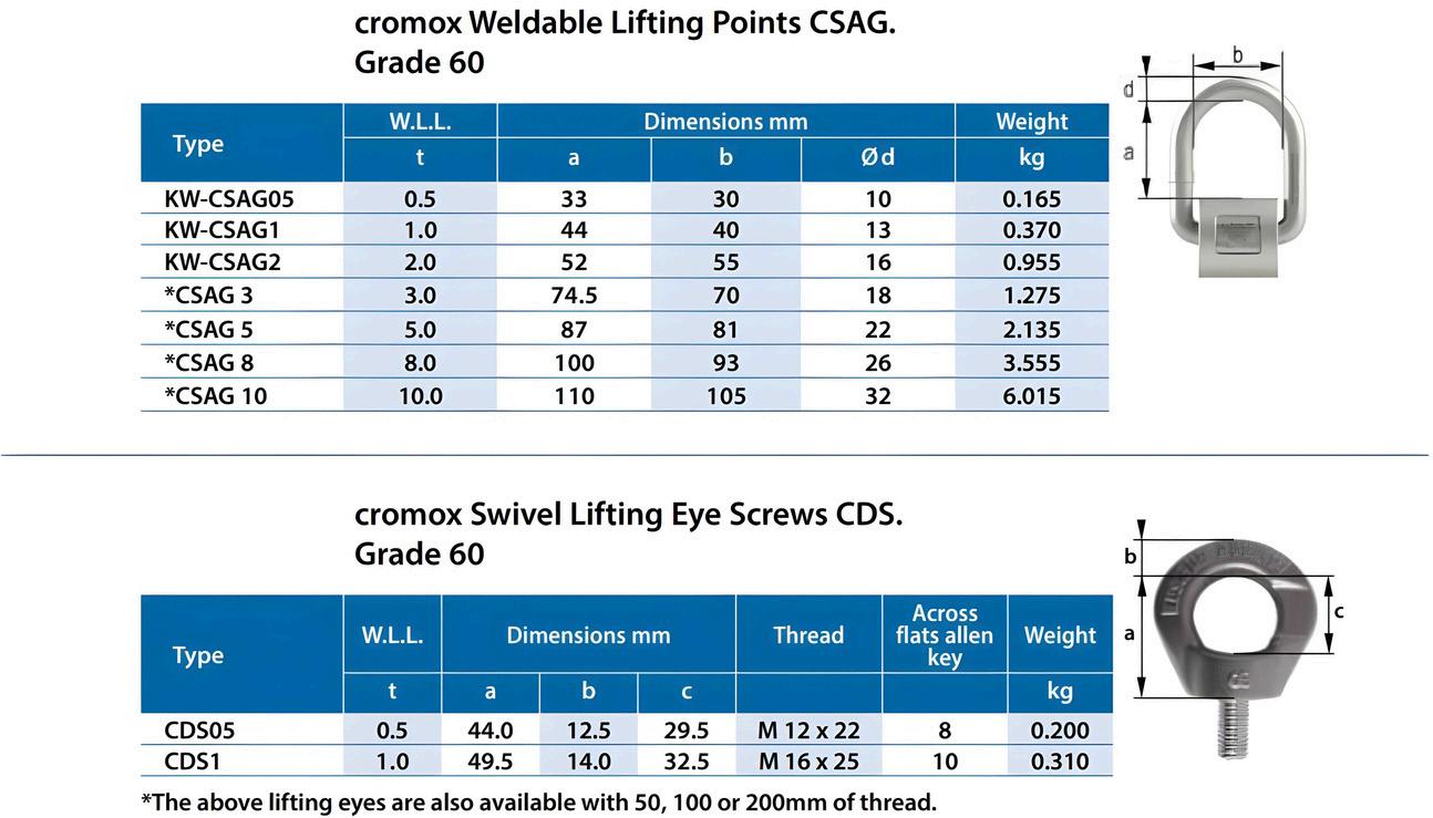 cromox Lifting Points. Stainless Grade 60 sales@keblestrading.com.au www