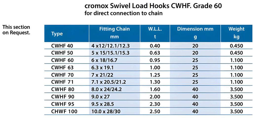 cromox chains for hand and motorized chain hoists and swivel hooks are individually tested by our technical staff to ensure quality and durability. A Certificate of Manufacturing Quality comes with every hoist chain and swivel hook.
