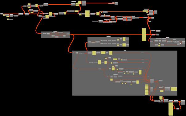 After clustering, a paneling script was developed to control parameters such as panel thickness, inner fillet curvature, panel spacing, and edge thickness. A challenge was to make the script efficient to minimize loading time. To achieve this, the script predominantly used local components in Grasshopper, while preserving the integrity of the data tree.