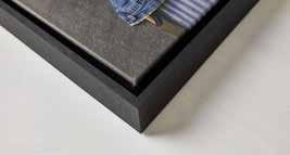 Custom hand-stretched gallery-wrapped canvas for a clean contemporary look in a floating frame, giving it a transitional feel. Choose your wood tone to best compliment your portrait.