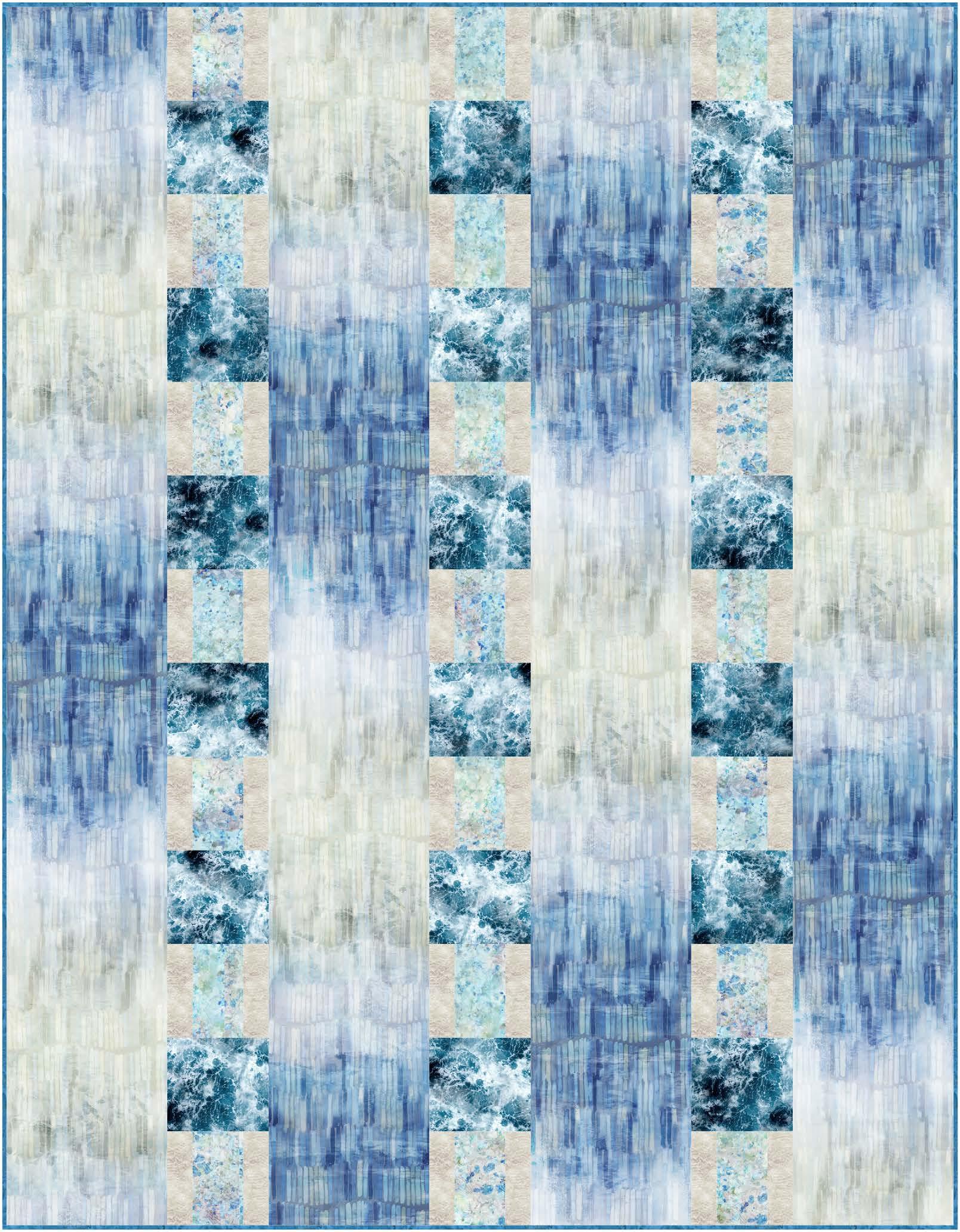 A bird's eye view, these seagulls are waiting for their crumbs from beachgoers on this stunning shore. Featuring Dana Michelle's newest signature batik collection with Hoffman Fabrics. The pattern uses raw edge applique. Kit includes Dana's pattern and all the fabrics for the top, binding and backing. Intermediate