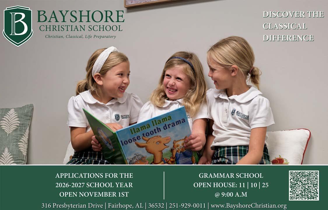 At the stroke of midnight, she awakes to find the Nutcracker leading his army of toy soldiers in a battle against the Mouse Queen. The noble Nutcracker prevails, and leads Clara on an adventure through the MIst of Mobile Bay. Angels guide them to the magical Land of the Sweets, where they are celebrated by the Sugarplum Fairy and delighted by treats from far off lands. A Fairhope Nutcracker showtimes are Saturday November 22, 2025 at 1:00pm and 6:00pm at Fairhope Civic Center. Scan the QR code for tickets. Children’s Dance Theatre will also be hosting A Fairhope Nutcracker Soiree on Friday, November 21, 2025 at Fairhope Civic Center.
