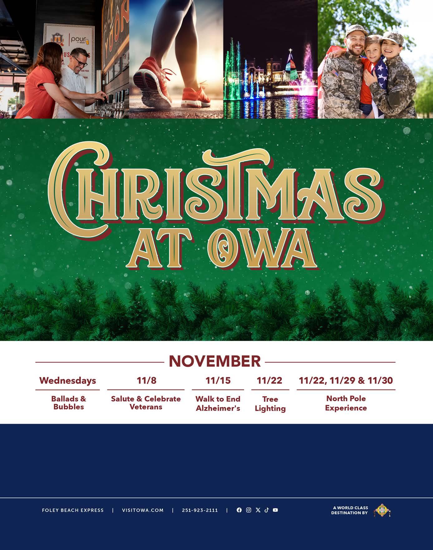 Nights in Lights has once again partnered with Coastal Church to provide a dazzling display of lights and fellowship on the church property in Daphne, AL. If you are a fan of the Nights in Lights drive-thru events, you will not want to miss this annual walkthru experience. Get special treats, visit with Santa, and enjoy the show at your own pace. You can even take pictures with the displays! Open December 4-7, 11-14, 18-23, 2025, from 6pm-9pm. Please visit https://nightsinlights.com/ for more information.