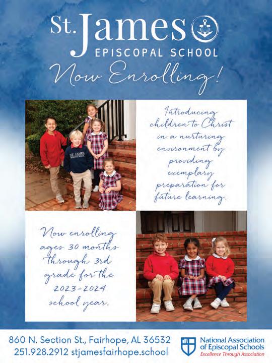 www.facebook.com/easternshoreparentsmagazine March 18 • Fairhope, AL 10K – 8 a.m. $15 per child for early registration, thru March 1 $20 per child after March 1 $20 per adult early registration, thru March 1 $25 per adult after March 1 2-mile fun run/walk – 9:30 a.m. $15 per child for early registration, thru March 1 $20 per child after March 1 $20 per adult early registration, thru March 1 $25 per adult after March 1 SUPPORTING BALDWIN COUNTY SCHOOLS SUPPORTING BALDWIN COUNTY SCHOOLS RRCA certified # AL22009JE Register online at SpringFeverChase.com $10,821 ISSUED TO BALDWIN COUNTY SCHOOLS IN 2022 REGISTER TODAY AT SPRINGFEVERCHASE.COM