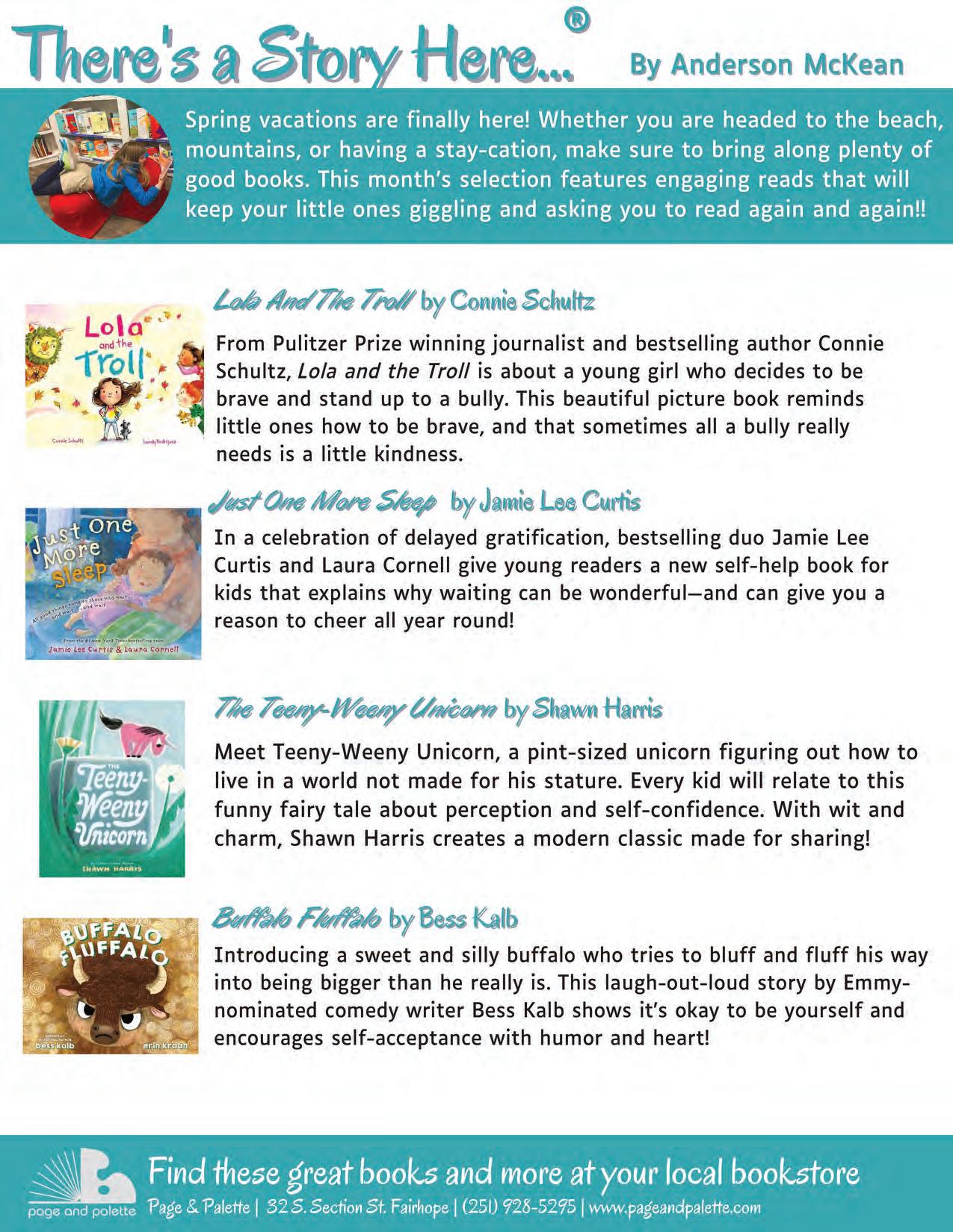 10:00 AM Page & Palette, 32 S Section Street Fairhope, AL, 36532 Please join us on Wednesdays at 10:30 AM for storytime! Each week, Miss Paula share a silly story the whole family will enjoy.