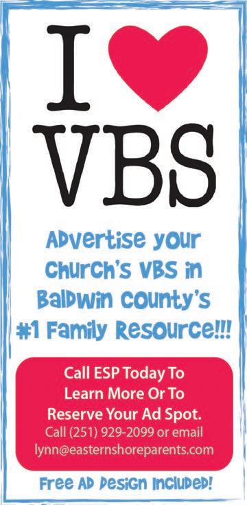 Scott Davis Eastern Shore Parents magazine is published monthly by KeepSharing, LLC. Mailing address: P.O. Box 374, Montrose, Alabama, 36559. The phone number for voice and fax is (251) 929-2099. Eastern Shore Parents is copyrighted 2024 by KeepSharing LLC. All rights reserved. Reproduction in whole or part without written permission is prohibited. Opinions expressed in Eastern Shore Parents magazine are those of the authors and do not necessarily reflect the view of the owners, nor do they constitute an endorsement of products and services herein.