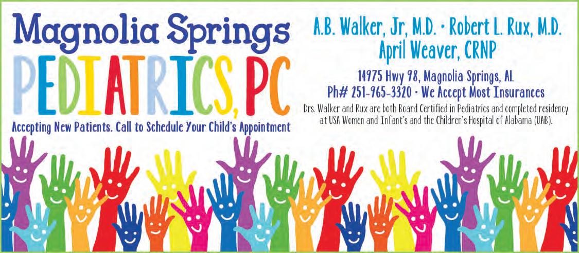 www.facebook.com/easternshoreparentsmagazine 251-210-1632 8909 Rand Ave Daphne AL 36526 www.AmericanAutismCenter.com • info@americanautismcenter.com • Autism • Asperger’s • Down Syndrome • Cerebral Palsy • Sensory Processing Disorder • ADD/ADHD • Developmental Delay • Many Others AMERICAN AUTISM & REHABILITATION CENTER Providing Hope for Your Special Needs Child Some of our services include: • Occupational Therapy • Speech Therapy • Diagnostician • Physical Therapy • Counseling • ABA Services • ABA School View the SERVICES tab on our website for a complete list.