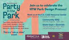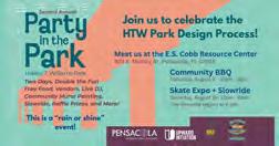 The City of Pensacola is hosting the second annual “Party in the Park” – a 2-day event on August 9 and August 16, adjacent to Hollice T. Williams Park to promote the park design process. The first day will be a Community BBQ, and the second day will be a Skate Expo and Slowride. Each day will feature a community stage with a DJ, food trucks, and art and skate vendors. Additionally, we will have a local muralist leading a community mural that will be installed temporarily in Hollice T. Williams Park. The first 100 people get a free meal.