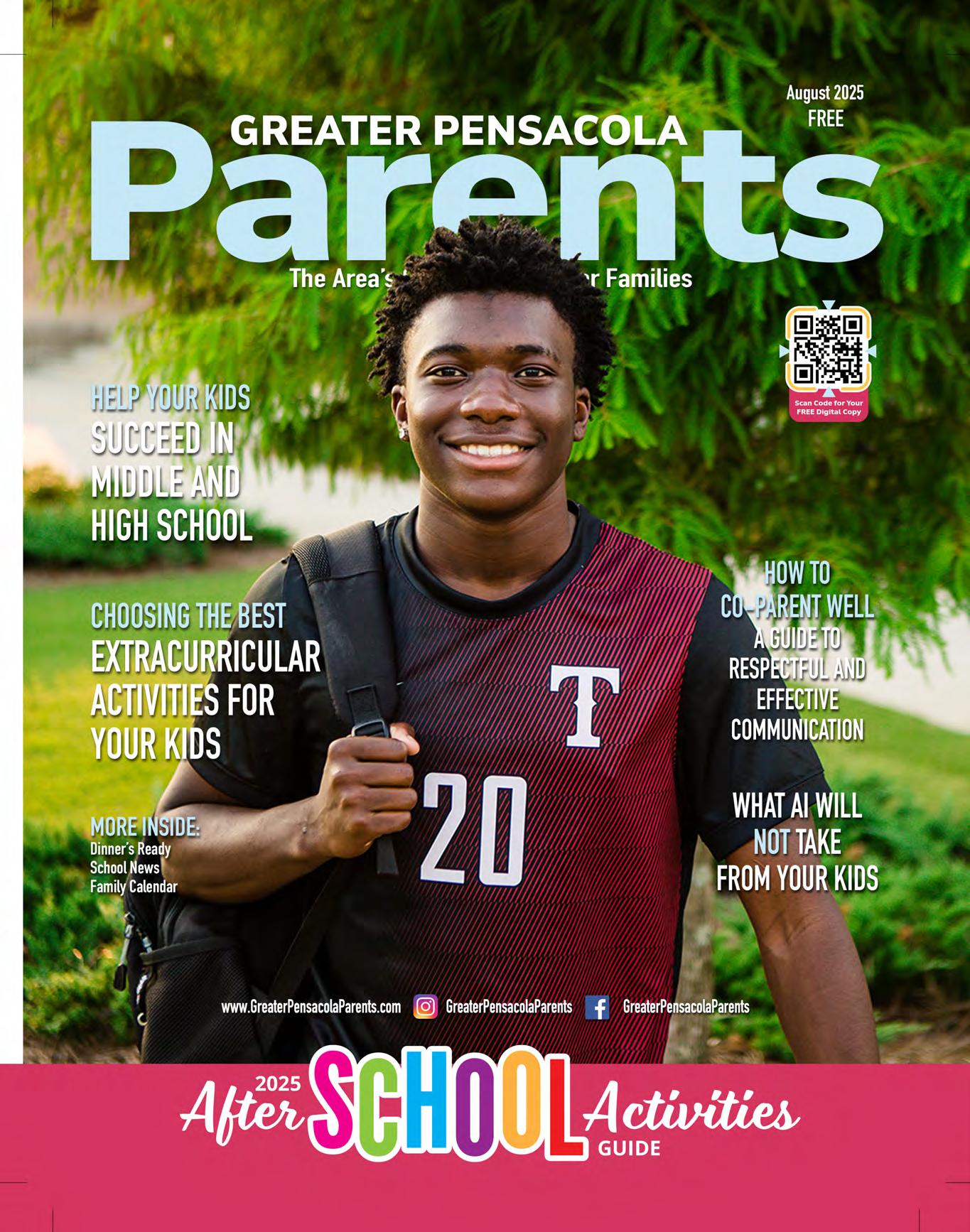 Greater Pensacola Parents magazine is published monthly by KeepSharing, LLC. Mailing address: PO Box 6241 Pensacola, FL 32503. The phone number for voice and fax is (850) 426-6222. Greater Pensacola Parents is copyrighted 2025 by KeepSharing LLC. All rights reserved. Reproduction in whole or part without written permission is prohibited. Opinions expressed in Greater Pensacola Parents magazine are those of the authors and do not necessarily reflect the view of the owners, nor do they constitute an endorsement of products and services herein.