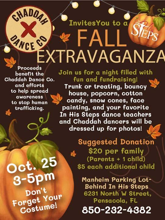Join us for the 6th annual Beach-O-Ween, a spooktacular event at the Pensacola Beach Boardwalk on Friday, October 17th, from 4-8 p.m. This family-friendly event will have something for everyone, with activities such as a Halloween bounce house, costume contest, games, face painting, and hotdogs. Plus, there will be plenty of candy to satisfy your sweet tooth. Don’t forget to dress up in your best costume and join us for a night of delicious fun at the Pensacola Beach Boardwalk. Please visit https:// www.visitpensacola.com/beach-oween/ for more information.