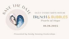 Join us for Brunch & Bubbles: Pearls of Hope on October 26, 2025 at 11AM at Portofino Island Resort, Pensacola Beach FL. Presented by Sandy Sansing Dealerships, this signature, waterfront fundraiser supports the mission of Gulf Coast Kid’s House to protect and uplift the children of Escambia County. Don’t miss your chance to be part of something truly meaningful. Join us as we raise our glasses—and critical funds—for the children who need us most. Please visit https://www.gulfcoastkidshouse.org/events/brunchandbubbles25/ for information.