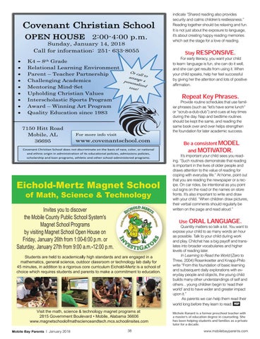 Quantity matters so talk a lot. You want to expose your child to as many words an hour as possible. Talk to your child during work and play. Chitchat has a big payoff and translates into broader vocabularies and higher levels of reading later. In Learning to Read the World (Zero to Three, 2004) Rosenkoetter and Knapp-Philo write “From this foundation of basic learning and subsequent daily explorations with everyday people and objects, the young child builds many other understandings of self and others…young children begin to ‘read their world’ and to have wider and greater impact upon it.” As parents we can help them read their world long before they learn to read. MBP Michele Ranard is a former preschool teacher with a master’s of education degree in counseling. She has been helping students and families as a private tutor for a decade.