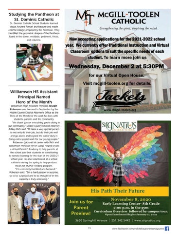 Williamson High Assistant Principal Joseph Roberson was honored in September by the Mobile County District Attorney's Office as the Hero of the Month for the work he does with students, parents and the community. "We thank you for everything you're doing in our community," Mobile County District Attorney Ashley Rich said. "It takes a very special person to not only do their job, but do their job well and go above and beyond the call of duty in doing extra special work for our young people." Roberson (pictured at center with Rich and Williamson Principal Kirven Lang) helped create a virtual Parents' Academy to help parents at the school join their students in transitioning to remote learning for the start of the 2020-21 school year. He also volunteered at a school cafeteria during the spring to help produce meals for MCPSS' feeding program. "I'm extremely humbled and honored," Roberson said. "I'm a hard person to surprise, so to be surprised and to be thought of in this capacity is truly a blessing."