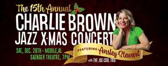 Get into the holiday spirit with the annual Charlie Brown Jazz Christmas Concert. Join us on Saturday, Dec. 28th at the Saenger Theatre at 7:00pm at the Saenger Theatre. The show includes a performance by The Joe Cool Trio – John Milham (drums), Chris Spies (piano), and Chris Severin (bass) - performing Vince Guaraldi’s Masterpiece Soundtrack, A Charlie Brown Christmas. This year’s show will also feature the vocal stylings of Atlanta’s Ansley Stewart. What makes this event even more special is that a portion of the proceeds will be going to The Child Advocacy Center of Mobile: Helping children in the Mobile community who are victims of child abuse. Celebrate the season with fantastic music and the joy of giving back. We can’t wait to see you there. Tickets are limited, so grab yours today before they sell out. Visit https://www. mobilecivicctr.com/events/detail/a-charlie-brown-jazz-christmas-1.