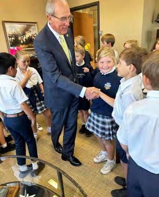 To celebrate National First Responders Day, Little Flower Catholic School had the privilege of hosting members of the Mobile Police Department and the Spanish Fort Fire Department. Little Flower Student Government president, Ethan Escalante, welcomed the visitors for doughnuts and coffee. Little Flower is grateful for the opportunity to express our gratitude for their service and dedication to our community. The morning was