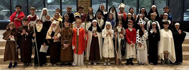 In celebration of All Saints Day, Corpus Christi Catholic School 4th graders came to school dressed as their favorite saints and participated in the processional at Mass on November 1st. Afterwards, they followed behind the Eucharist Procession led by Fr. Pat. The students then gave a short presentation about their saints.