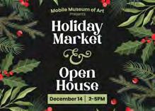 Join Mobile Museum of Art on December 14, from 2:00pm5:00pm for an afternoon of local shopping, live music, food trucks, art activities, and free admission to the Museum. Support local artisans at the Makers Market, which will feature a variety of handmade items, such as jewelry, pottery, selfcare products, and baked goods. During the Open House, explore MMofA’s