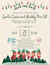 Come enjoy milk and cookies with Santa and Buddy the Elf to benefit Azalea City for the Arts on December 21st at 12:30pm at 11 South Carlen Street. Tickets are $10 and include milk and cookies, coffee bar for adults, meet and greet with Santa and Buddy the Elf, digital photo album access from the event. Tickets are purchased at the door.