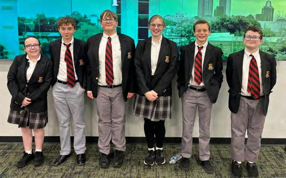 St. Pius X School Catholic Cup Challenge Team is pictured with Archbishop Rodi and Superintendent Chad Barwick after receiving their medals for winning first place in “The Life of Christ” round. St. Pius X student Eve Marie came in third place in “The Tournament of Champions” round.