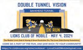 Join us Saturday, May 4 at 8:00 am for the Tunnel Vision 5K to benefit the sight programs of the Lions Club of Mobile. Certified 5K course starts near Canal Street between Washington Avenue and Broad Street. The race will finish at Oyster City Brewing Co. on Government Street. Participants have the opportunity to run through the Bankhead Tunnel, not once, but twice – a unique Mobile experience. Registration: https://raceroster.com/events/2024/87471/double-tunnel-vision-5k.