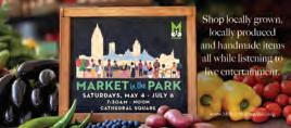 Join us Saturdays, May 4 - July 6 in Cathedral Square from 7:30am – Noon for Market in the Park. Shop locally grown, locally produced, and handmade items all while listening to live entertainment.
