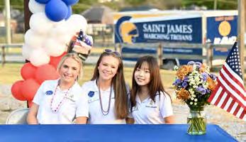The Saint James Marching Trojans competed on Saturday, September 27th in the 5th Annual Camellia Marching Band Festival held at Marbury High School. Bands from all over Central Alabama competed for top honors. The Saint James Marching Trojans gave an outstanding performance. The band received all superior ratings (1st Place) for band, percussion, and drum major. Scoring was done by a 3-judge panel for band adjudication. The Saint James Band program is led by Mr. Andy Martin. The Saint James Color Guard is sponsored by STJ faculty member Ms. Madeline Murray and choreographed by Mrs. Lauren Smith. The Saint James Color Guard appeared in their first competition since 2017. Saint James offers classes in Beginning Band, Intermediate Band, and Advanced Band. Students in grades 6-12 can participate in these classes.
