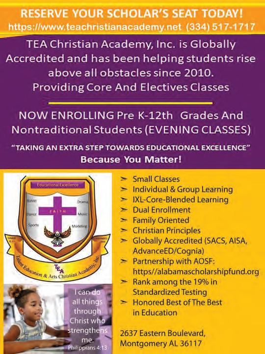 1 www.facebook.com/auburnopelika.parents What do MA graduates look like? Diverse in every way, yet they share surprisingly similar qualities. The Montgomery Academy instills the kinds of qualities a young adult needs to succeed. Our programs are carefully structured and experiences are designed around creating lifelong learners who challenge themselves. Co-curricular involvement is planned to champion honor, ethics, diversity and service. We do all this—but if you talk to our Upper School students they’ll tell you that they not only study hard in the classroom, they like to play hard on the field, too. Go Eagles! The Montgomery Academy The Pursuit of Excellence in K-12 Education Contact Rachael Gallagher, admissions@montgomeryacademy.org | 334.272.8210 | montgomeryacademy.org COMMITTED TO INTEGRITY, BUT KNOWN TO FAKE A PASS [ PORTRAIT OF A GRADUATE—LOOKING TO THE FUTURE ]