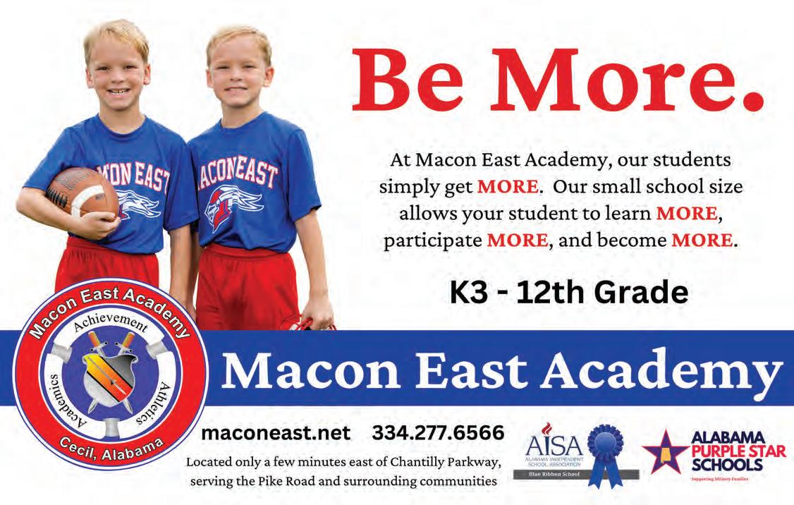 1 www.facebook.com/auburnopelika.parents What do MA graduates look like? Diverse in every way, yet they share surprisingly similar qualities. The Montgomery Academy instills the kinds of qualities a young adult needs to succeed. Our programs are carefully structured and experiences are designed around creating lifelong learners who challenge themselves. Co-curricular involvement is planned to champion honor, ethics, diversity and service. We do all this—but if you talk to our Upper School students they’ll tell you that they not only study hard in the classroom, they like to play hard on the field, too. Go Eagles! The Montgomery Academy The Pursuit of Excellence in K-12 Education Contact Rachael Gallagher, admissions@montgomeryacademy.org | 334.272.8210 | montgomeryacademy.org COMMITTED TO INTEGRITY, BUT KNOWN TO FAKE A PASS [ PORTRAIT OF A GRADUATE—LOOKING TO THE FUTURE ]